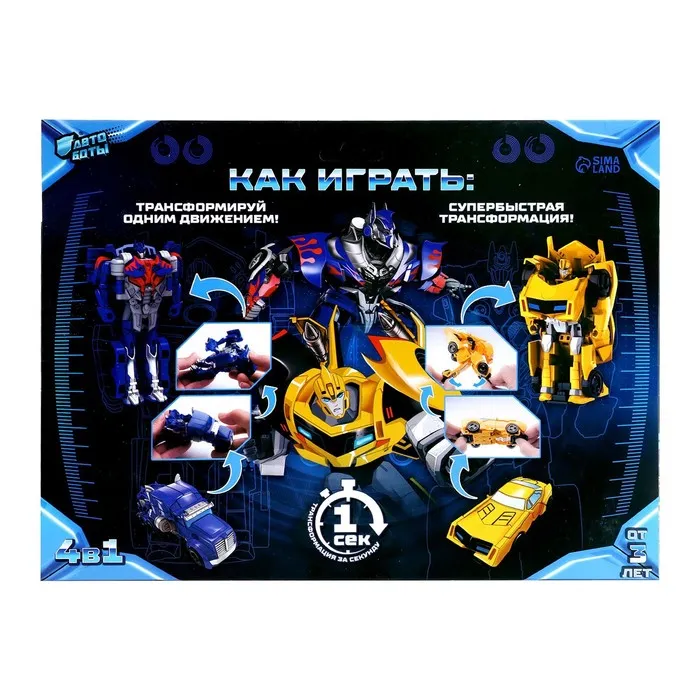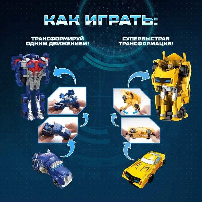 - Яркий дизайн: жёлтая спортивная машина и синий грузовик выглядят как настоящий транспорт будущего. Стильный внешний вид и четкие линии делают игру еще более захватывающей. Эти роботы станут гордостью любой коллекции!