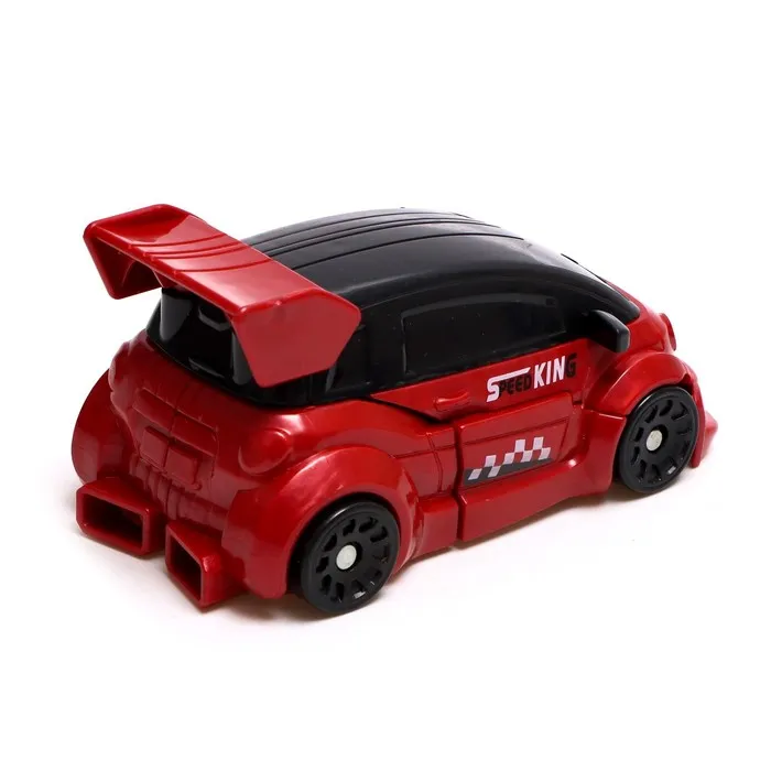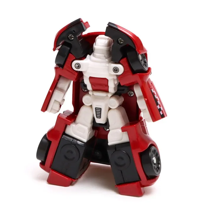 - Размер красного робота: 10 × 5,2 × 4,8 см. В виде машинки: 7 × 4,8 × 10 см.