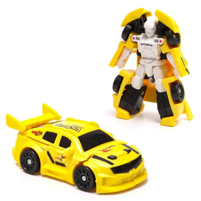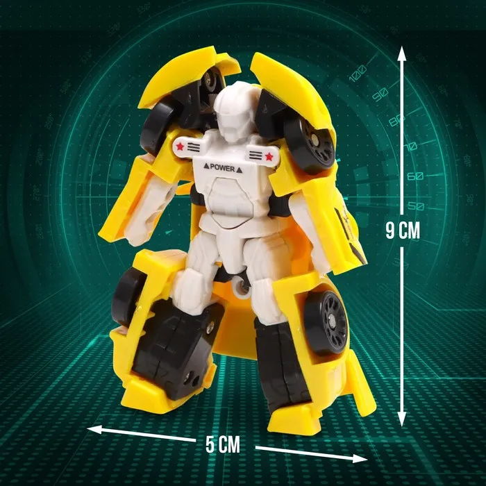 - Размер жёлтого робота: 10 × 5,2 × 3,5 см. В виде машинки: 7,5 × 3,5 × 10,5 см.