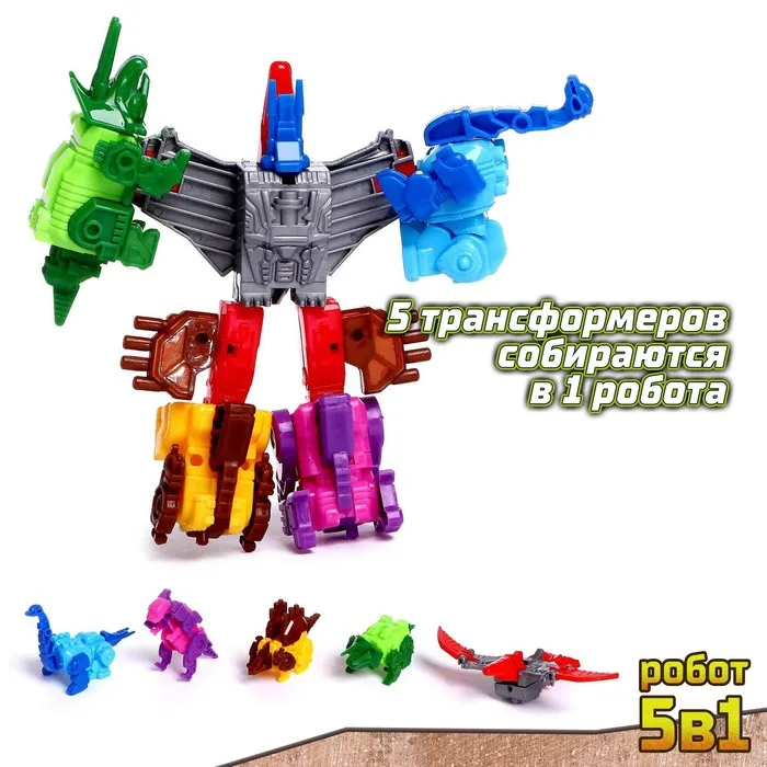 Набор из 5 роботов-трансформеров станет отличным подарком для ребёнка от 3 лет. Вместе они объединяются в одного большого и впечатляющего суперробота. Это не только игрушка, но и возможность для ребёнка развивать фантазию и пространственное мышление.