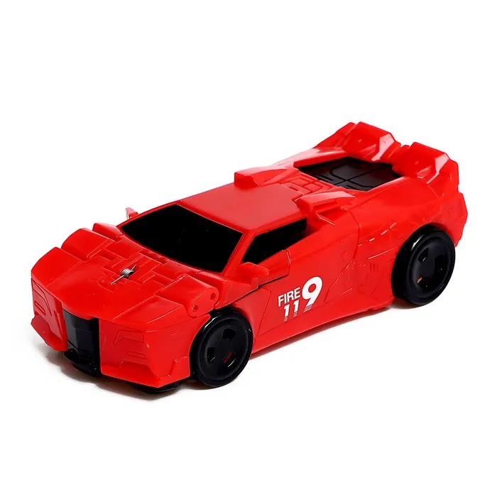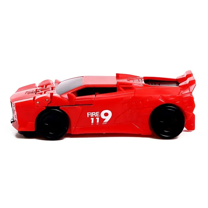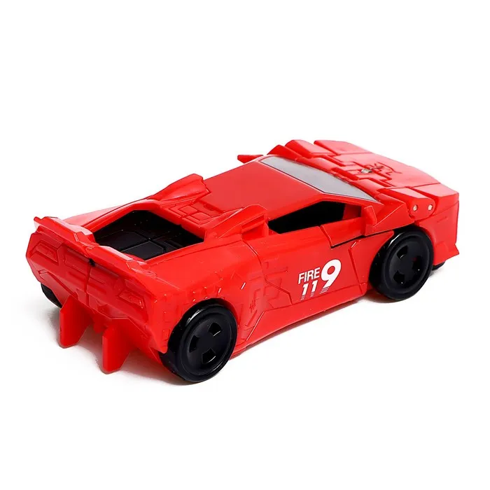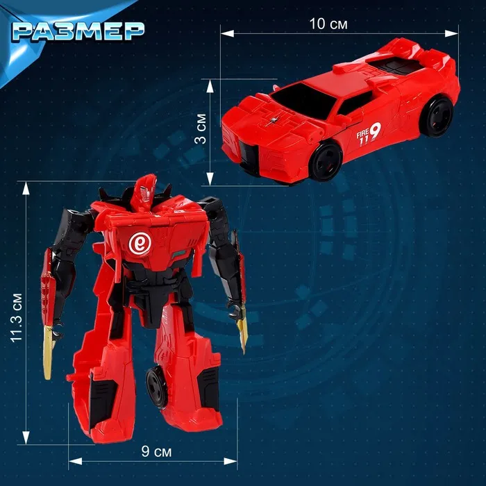 - Размер красного робота: 9 × 3 × 11,3 см. В виде машинки: 10 × 5 × 3 см.