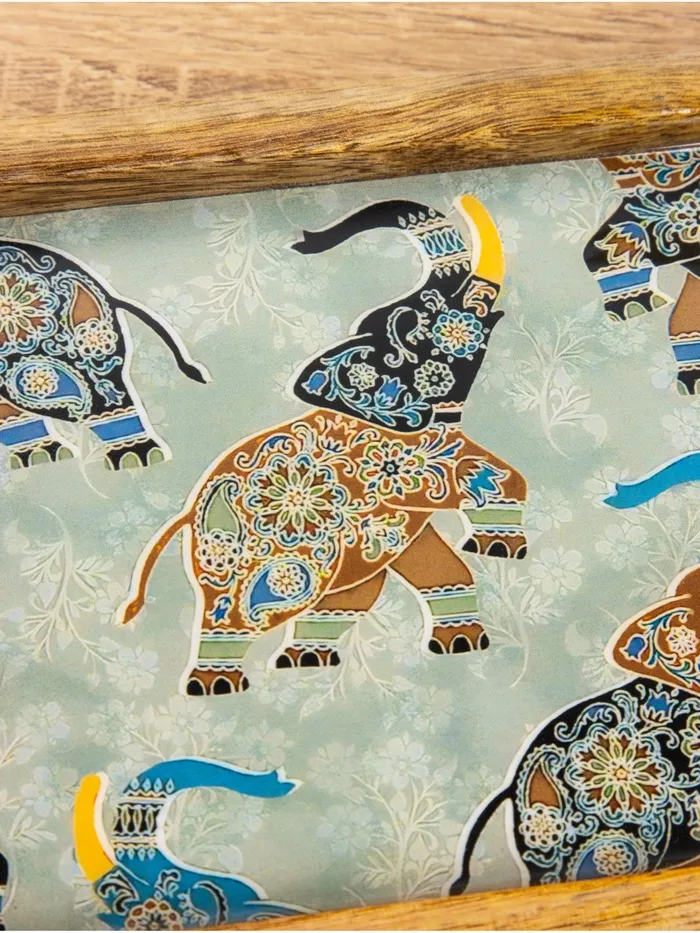 Набор розеток на подносе «Мудрый слон», 3 шт., 33.5×13×6.5 см, дерево манго — Характеристики