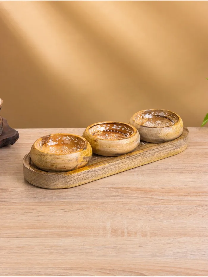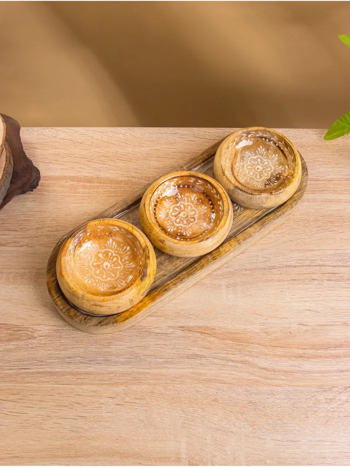 Набор розеток «Пряник» включает в себя подставку и три изящные розетки, выполненные из дерева манго, известного своей прочностью и уникальной текстурой. Эти стильные изделия обладают цветочно-растительным рисунком и нежно бежевым оттенком, которые легко впишутся в любой интерьер. Несмотря на отсутствие возможности мытья в посудомоечной машине и использования в микроволновой печи, каждая деталь комплекта впечатляет своей ручной работой и гладкой текстурой, делая его настоящим произведением искусства.