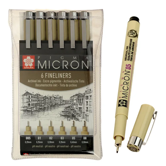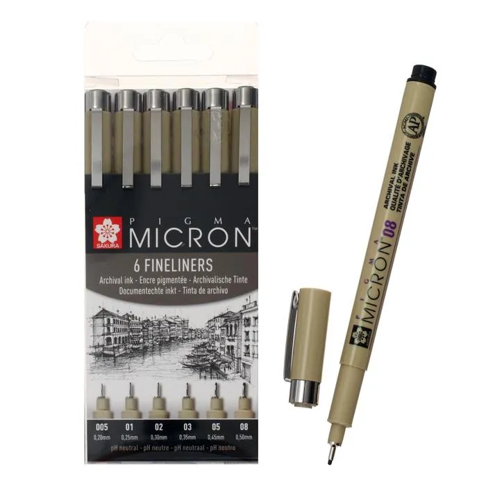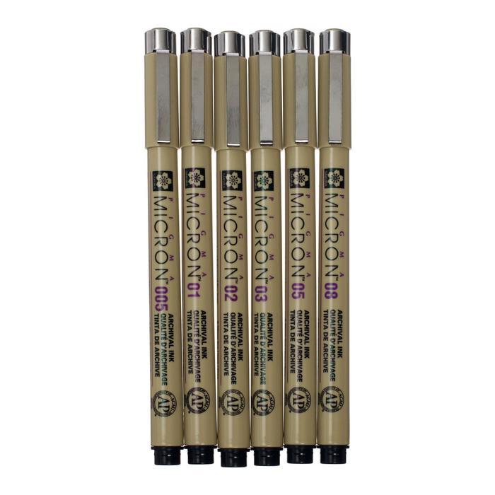 Набор ручек капиллярных 6 штук (линеры 0.2, 0.25, 0.3, 0.35, 0.45, 0.5), Sakura Pigma Micron, цвет чёрный (пигментные светостойкие чернила) — Характеристики