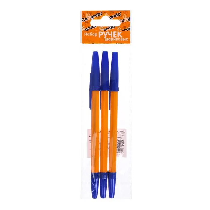 Набор ручек шариковых, 0.7 мм, 3 шт., стержень синий, оранжевый корпус — Характеристики