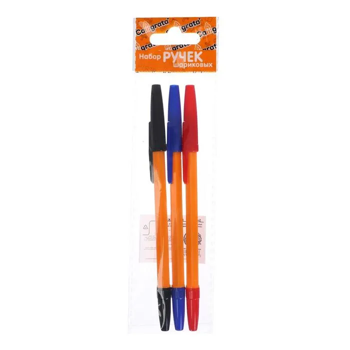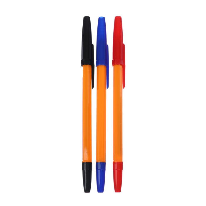 Набор ручек шариковых 3 цвета, стержень 0,7 мм, синий, красный, чёрный, корпус оранжевый — Характеристики