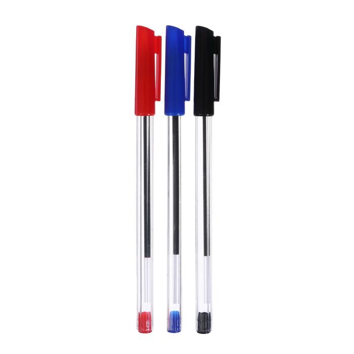 Набор ручек шариковых 3 цвета, стержень 1,0 мм, синий, красный, чёрный, корпус прозрачный — Характеристики