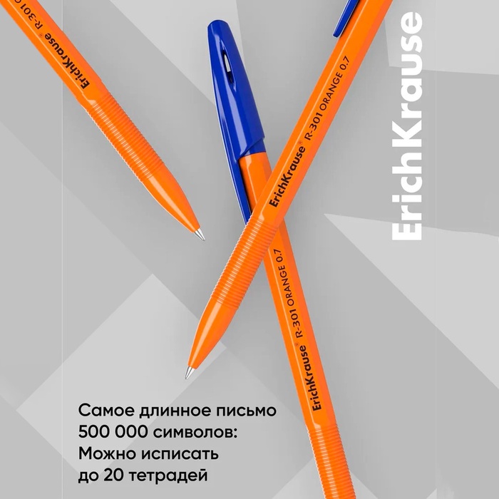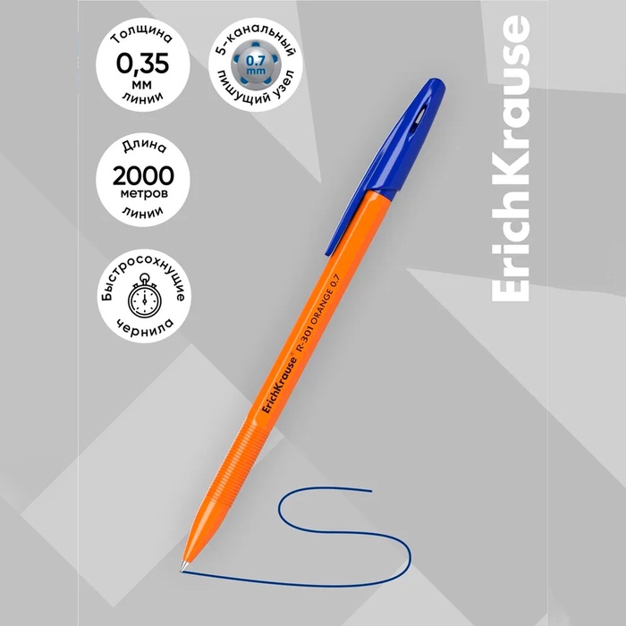 - Модель R-301 Orange 0.7 Stick имеет узнаваемую запатентованную форму и стала одним из бестселлеров в ассортименте шариковых ручек ErichKrause® более чем в пятидесяти странах мира.
