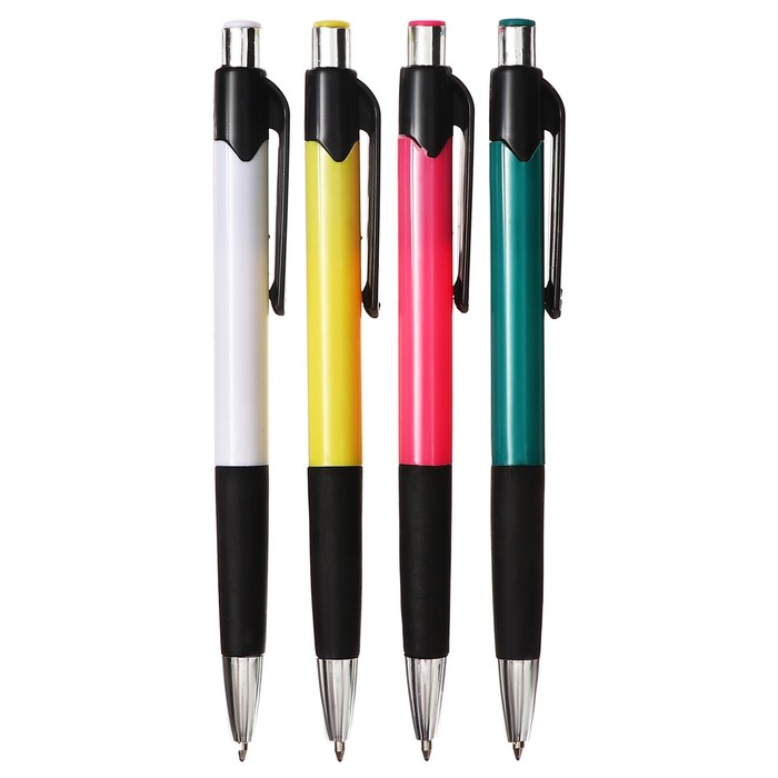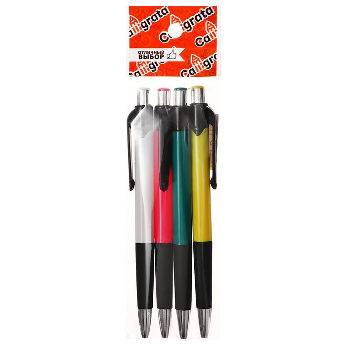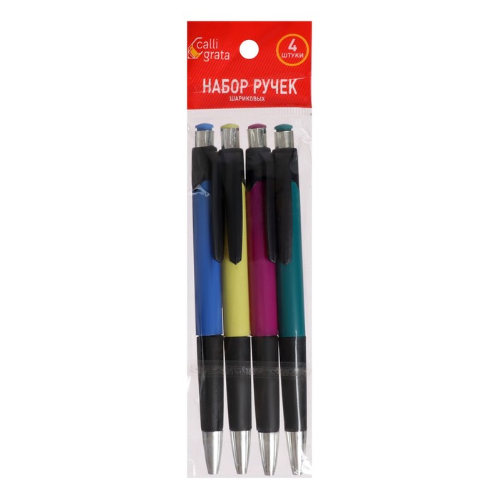 Набор ручек шариковых, 4 штуки, цветной корпус, с резиновым держателем, МИКС — Характеристики