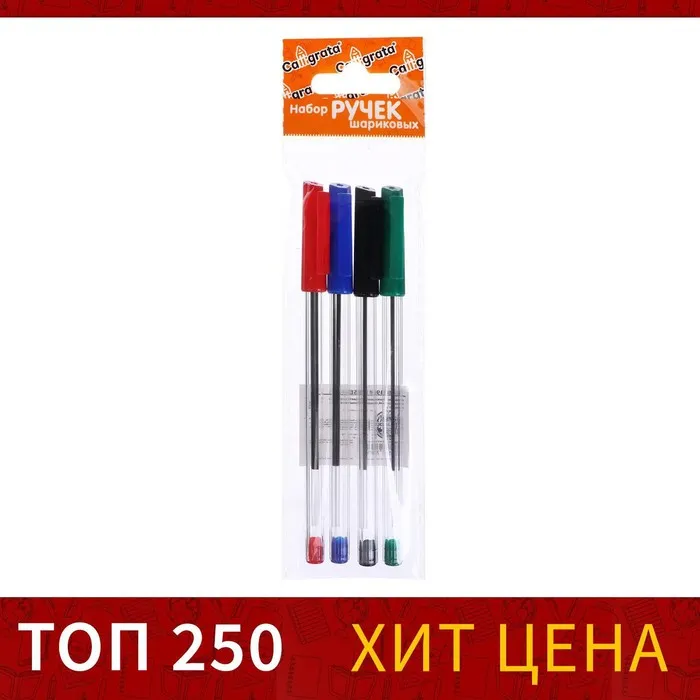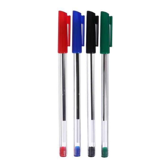 Набор ручек шариковых 4 цвета, стержень 1,0 мм синий, красный, чёрный, зелёный, корпус прозрачный — Характеристики