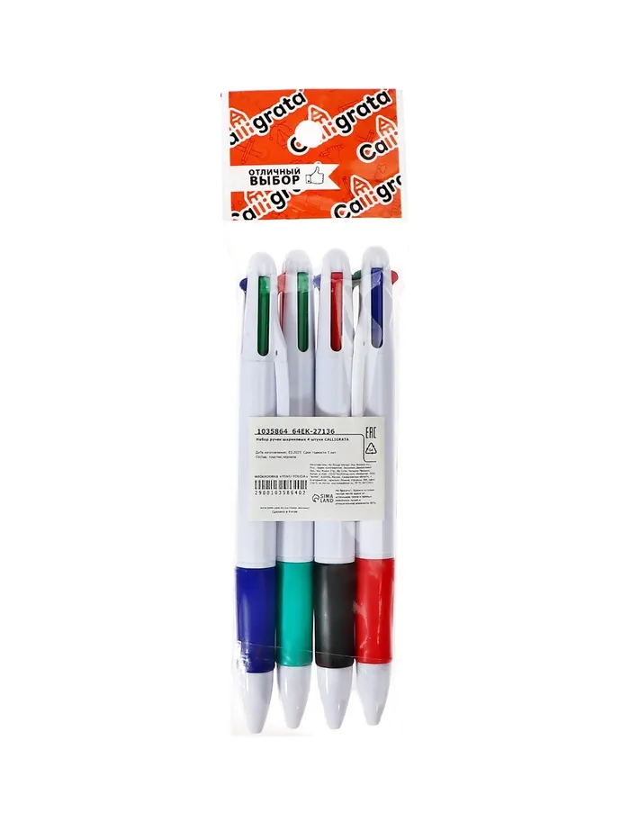 Набор ручек шариковых Calligrata, 4 штуки, автоматических, стержень 4-х цветный — Характеристики