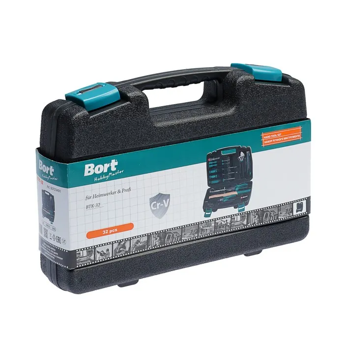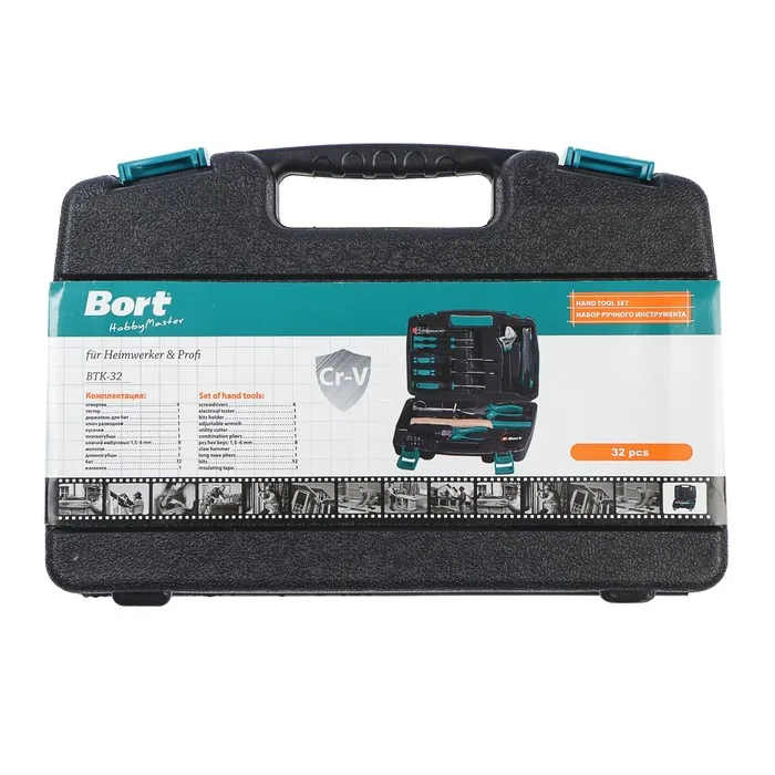 Набор ручного инструмента Bort BTK-32, сталь CrV, 32 предмета в чемодане — Характеристики