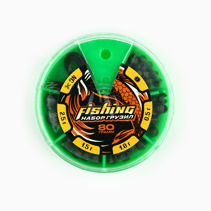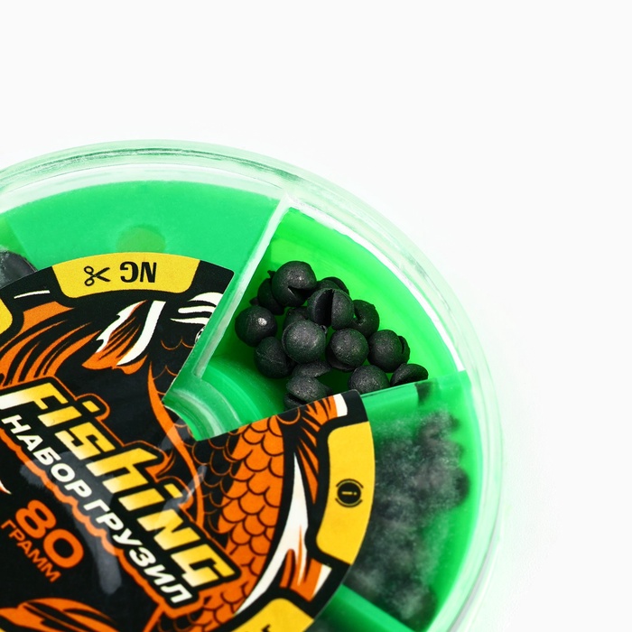 Набор рыболовных грузил 80 г, стопор 1 шт. и кембрики 1 шт., d=7 см