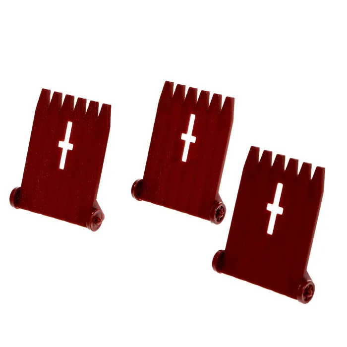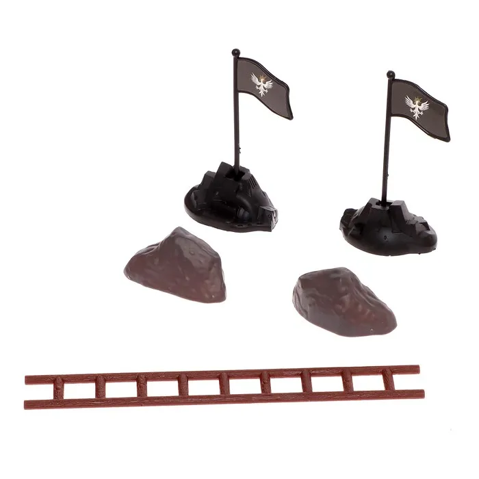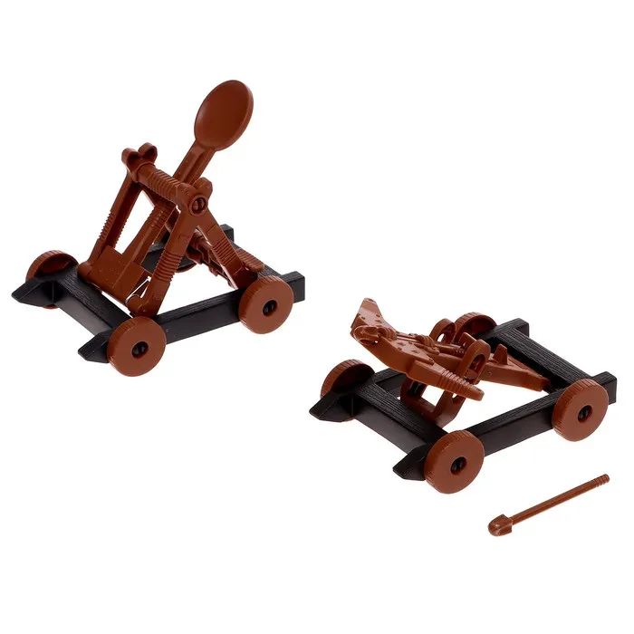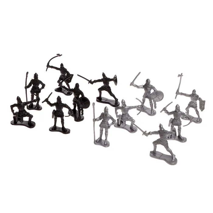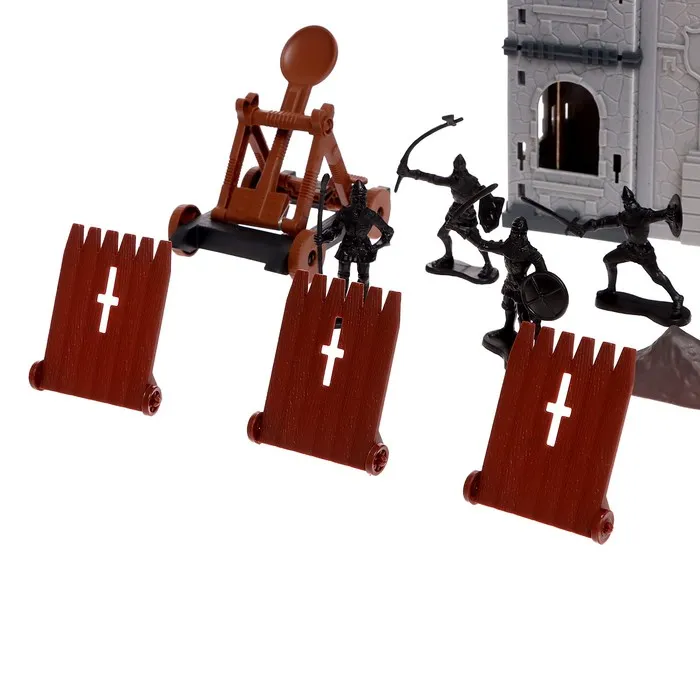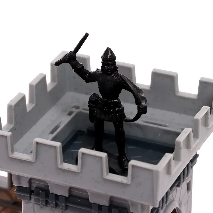 - 12 пластиковых рыцарей (4 × 1,5 × 6 см каждый), вооружённых щитами и мечами, готовы встать на защиту вашего замка.