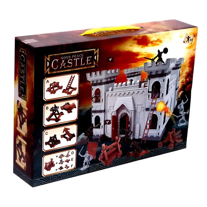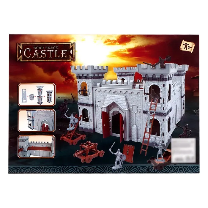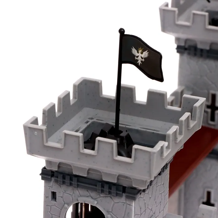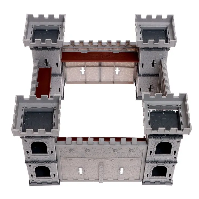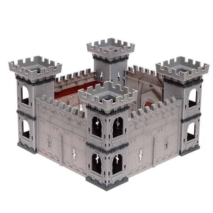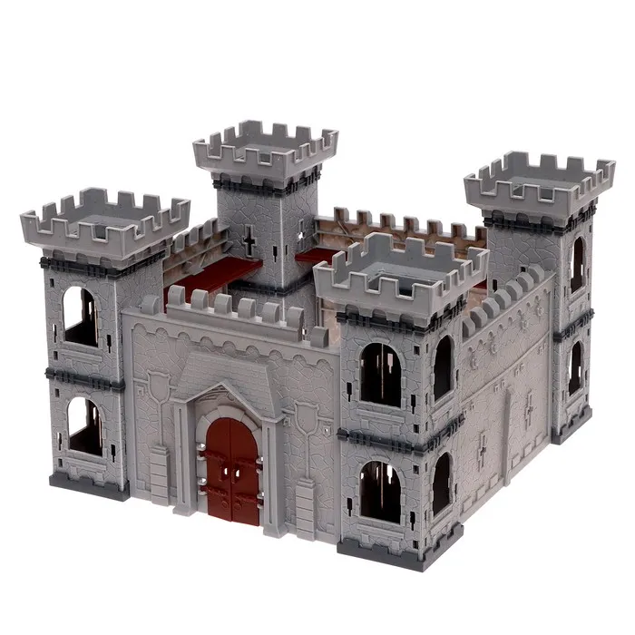 - Замок изготовлен в классическом сером цвете, имеет несколько уровней, а также башни и бастионы, что позволяет воплотить сценарии самых невероятных боёв.