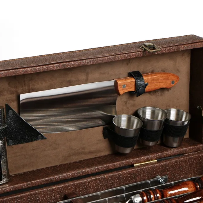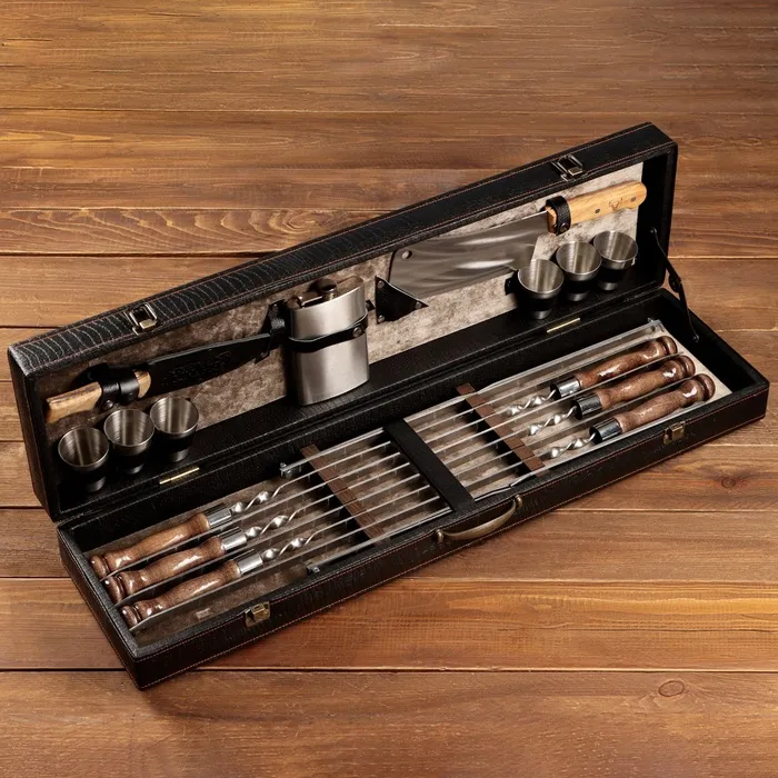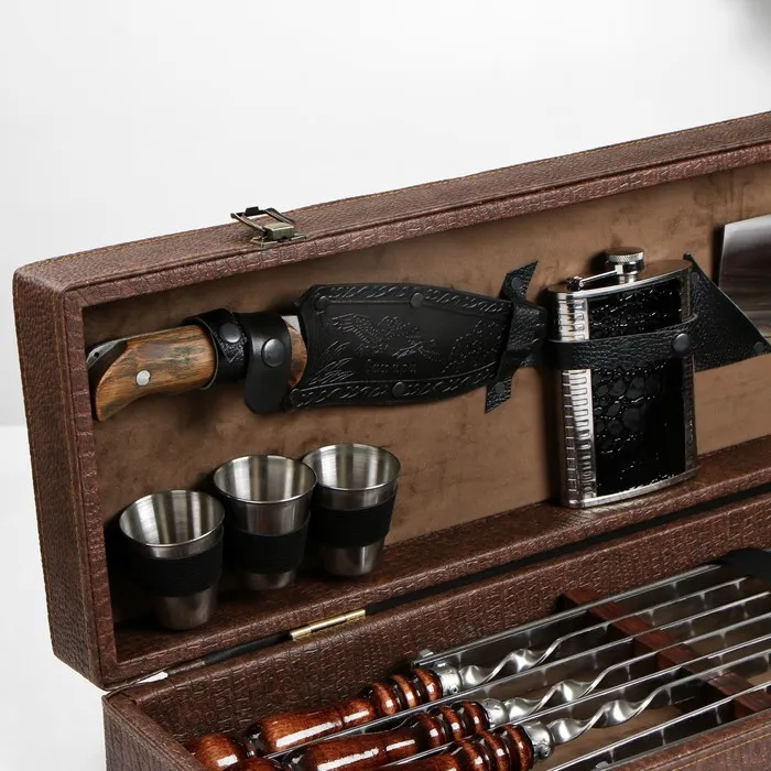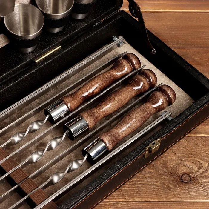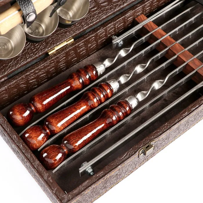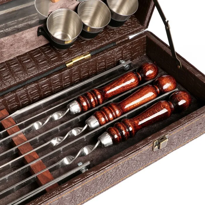 Набор с шампурами подарочный «Элит-X» №7, в коробке из эко-кожи — Характеристики