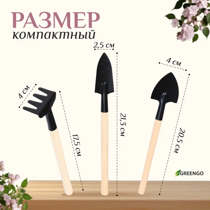 С помощью этого набора вы можете уверенно заниматься своим увлечением и заботиться о растениях. Компактные размеры инструментов облегчают выполнение различных задач, от рыхления грунта до пересадки. Лёгкость и прочность конструкции делают работу комфортной и эффективной.