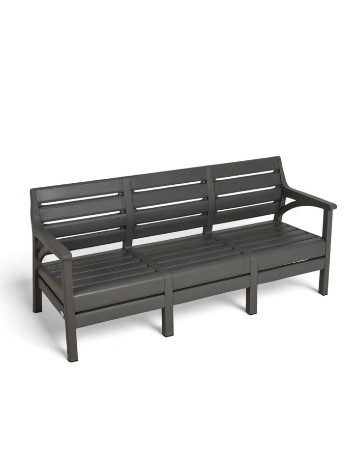 Набор садовой мебели «Евпатория» серого цвета — готовый комплект для создания уютной зоны отдыха. Включает просторный диван на 3 места (190×65×79 см), 2 удобных кресла (66×65×79 см) и практичный стол (79×55×38 см). Прочный пластик выдерживает до 120 кг на место (360 кг для дивана).
