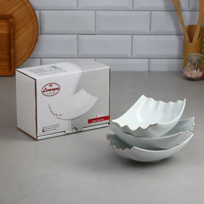 Набор салатников, 3 предмета, малые, золотая обводка, фарфор, Иран — Характеристики