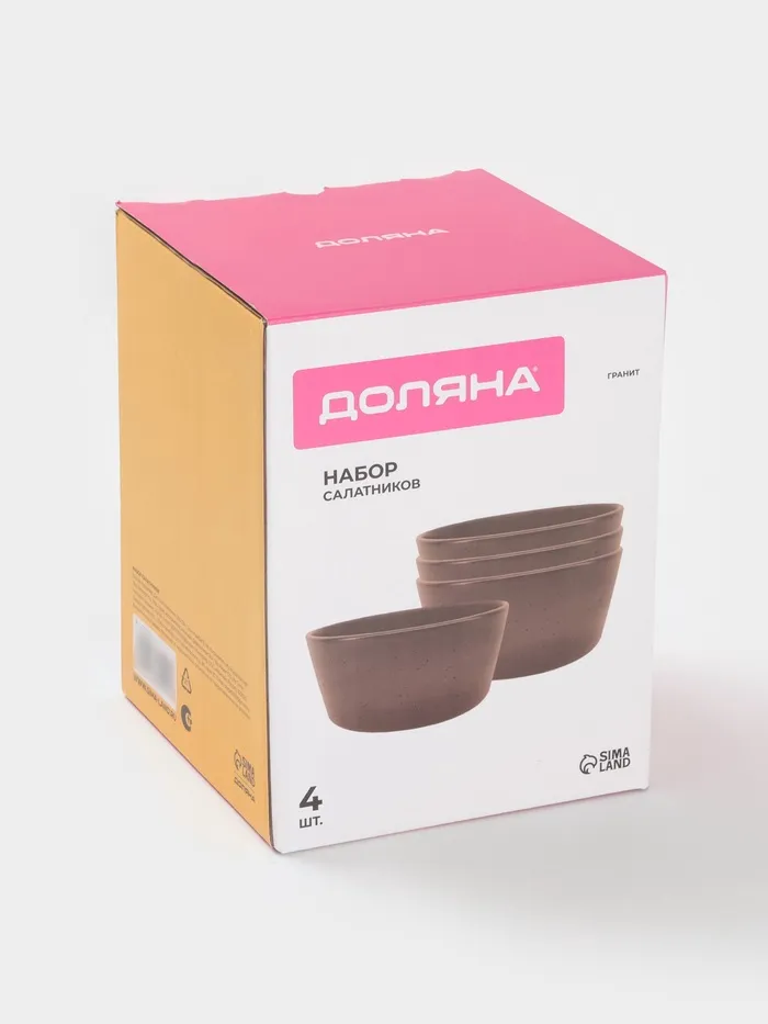 Набор салатников Доляна «Гранит», 4 шт., 800 мл, 14.5×7 см, керамика, коричневый — Характеристики