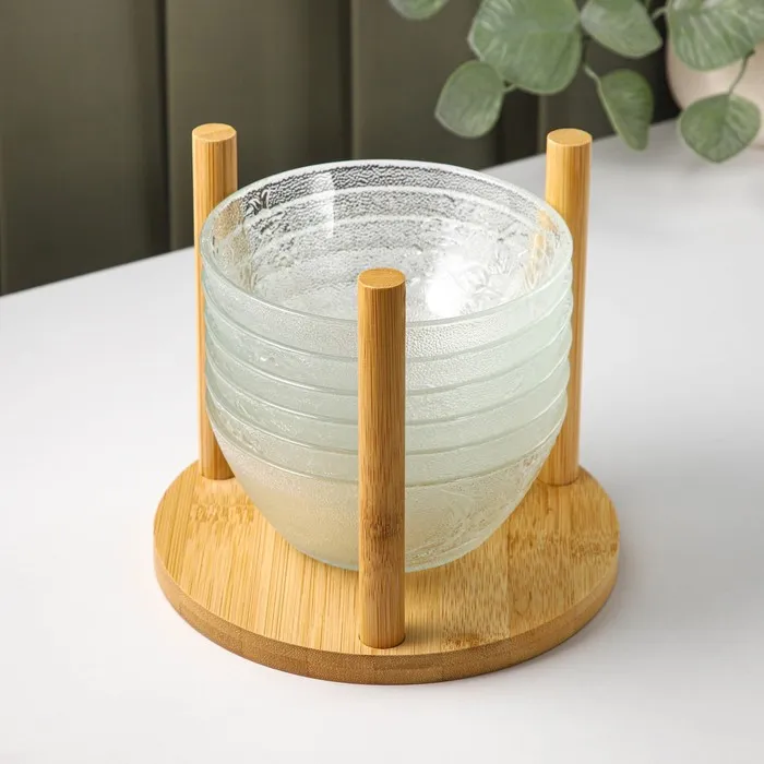 Набор салатников изготовлен из качественных и экологичных материалов: стекла и бамбука. Такая посуда легко впишется в праздничную сервировку и позволит интересно подать закуски на стол. Набор салатников подойдёт для проведения вечеринок или домашних посиделок с близкими.