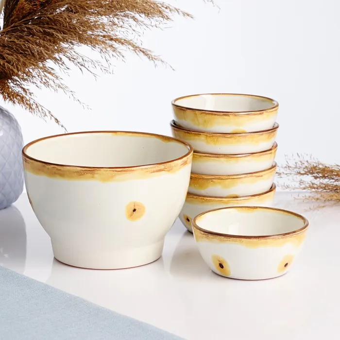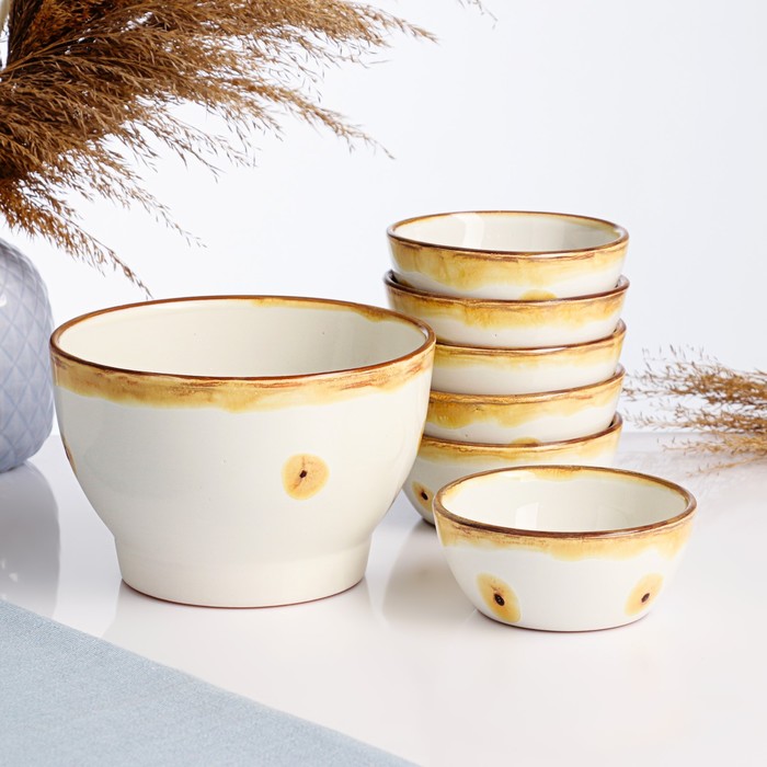 Набор салатников Псковский гончар «Карамель», 7 предметов: 6 шт. 200 мл, 1 шт. 1 л, керамика — Характеристики