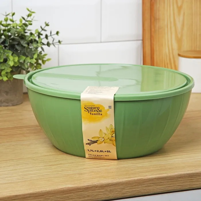 Набор салатников с крышками Giaretti Bono, 3 шт.: 5 л, 2.8 л, 1.7 л, пластик, МИКС — Характеристики