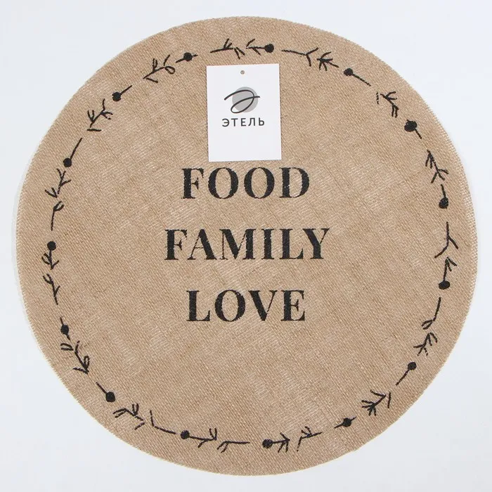 Набор салфеток Этель "Food.Family.Love"- 4шт. d38, джут — Характеристики