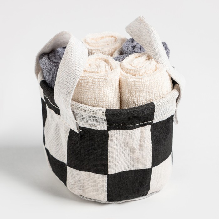 Набор салфеток махровых универсальных в корзинке Этель "Клетка" 30х30см-5шт,100% хлопок,340г/м2 — Характеристики