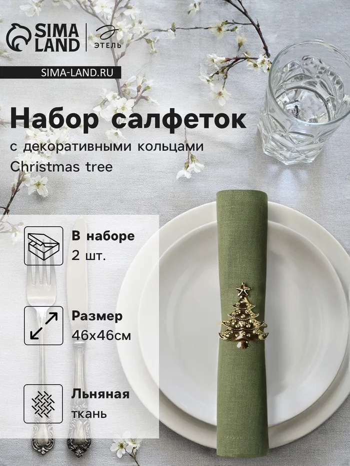 Набор салфеток с декорат. кольцами Этель Сhristmas tree 46х46 см - 2 шт, 100% лён — Характеристики