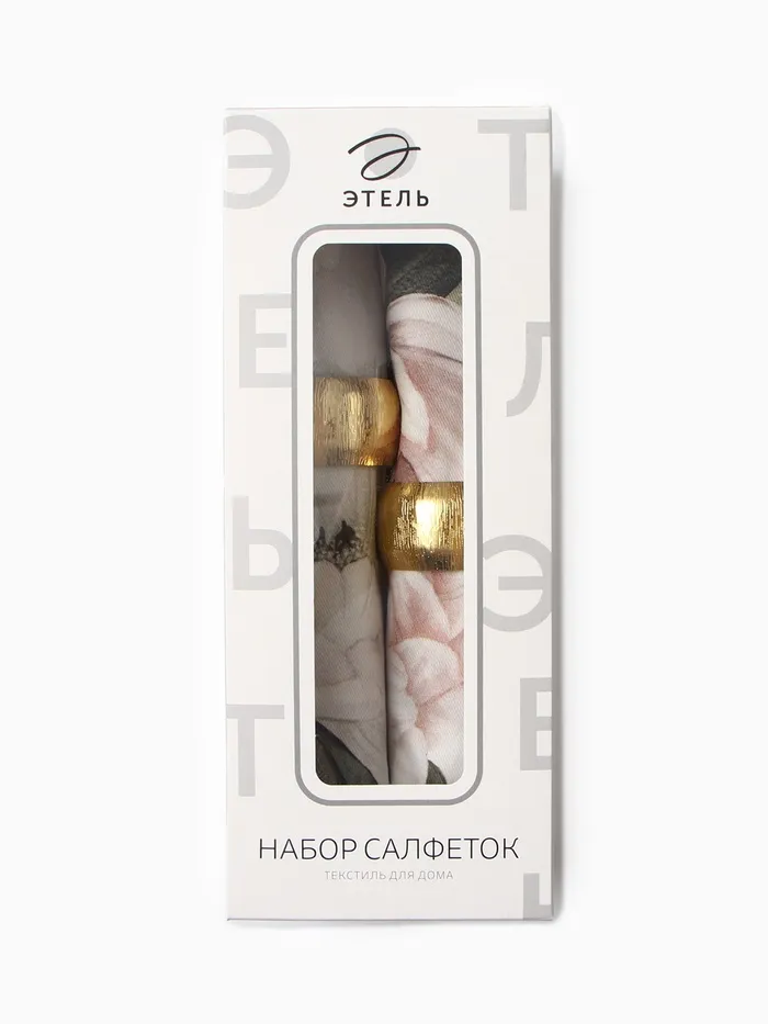 Набор салфеток с декоративными кольцами Этель "Пионы" 40х40 см - 2 шт, 100% хл, саржа 190 г/м2 — Характеристики