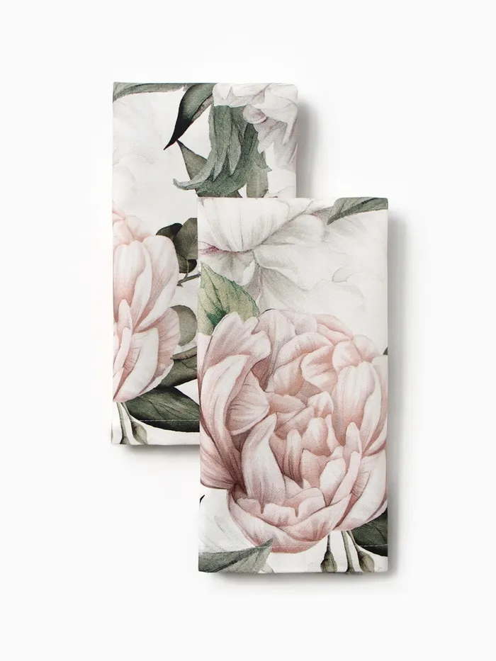 Набор салфеток с декоративными кольцами Этель "Пионы" 40х40 см - 2 шт, 100% хл, саржа 190 г/м2