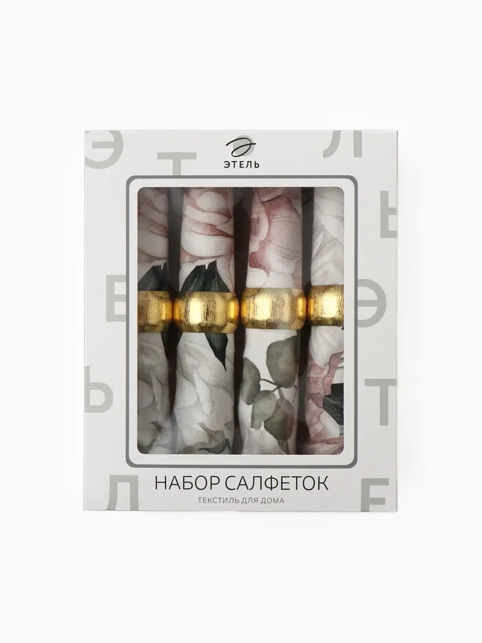Набор салфеток с декоративными кольцами Этель «Пионы» 40×40 см - 4 шт., 100% хл, саржа — Характеристики