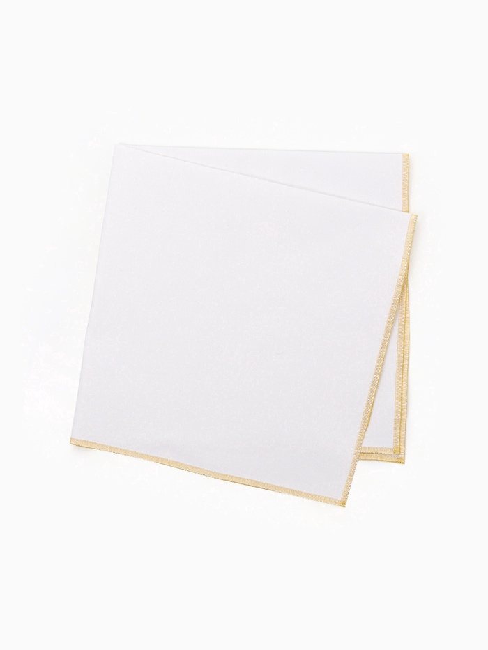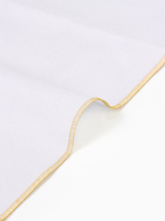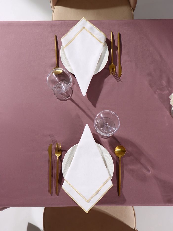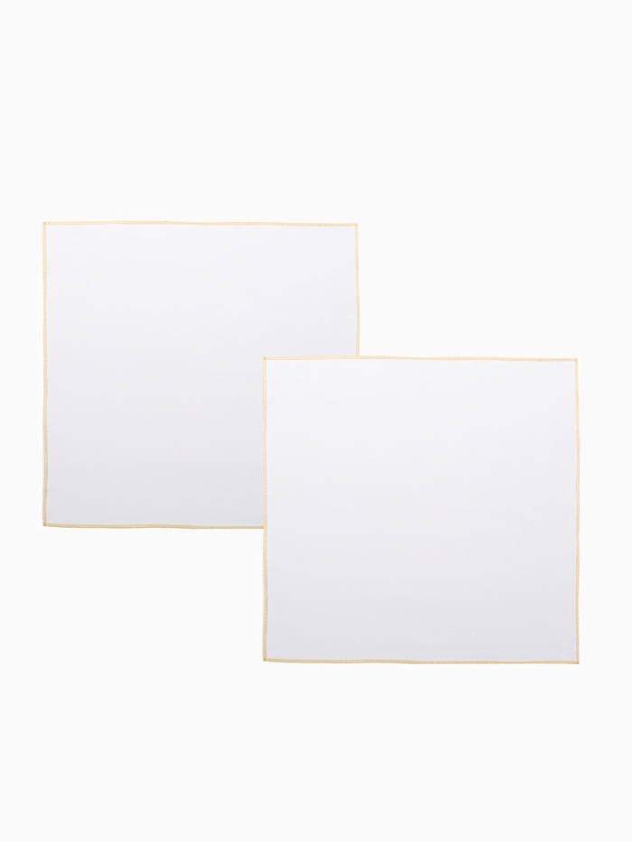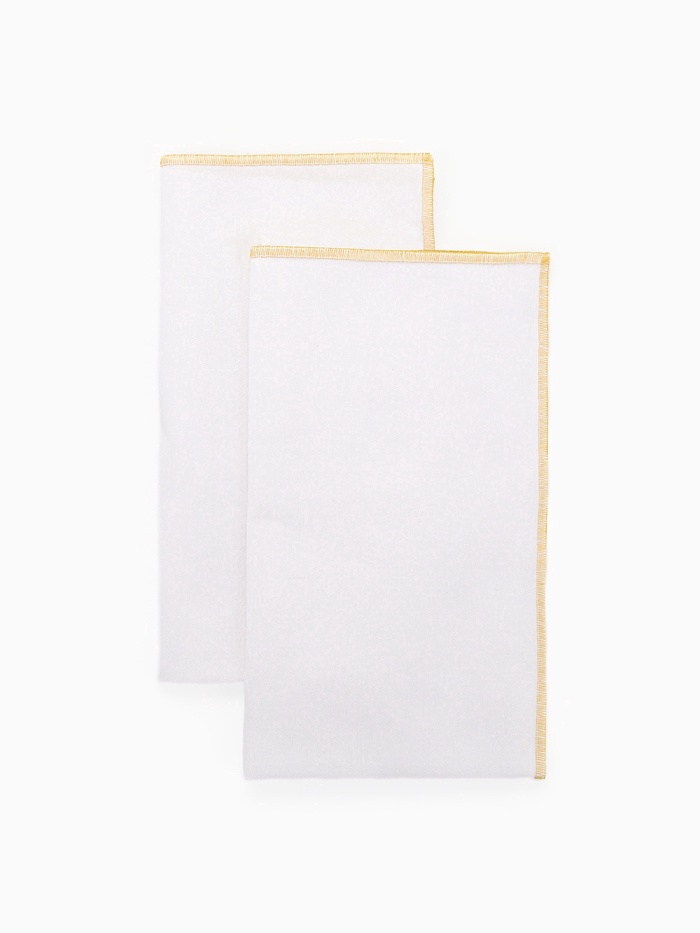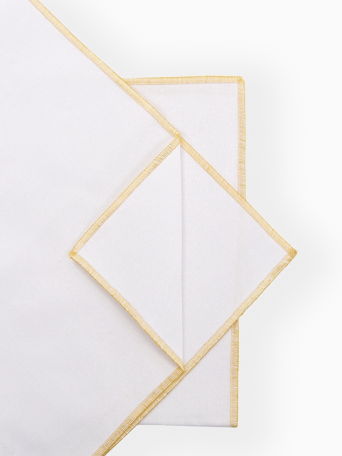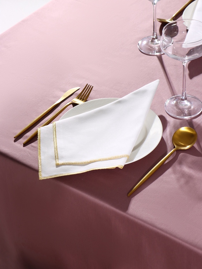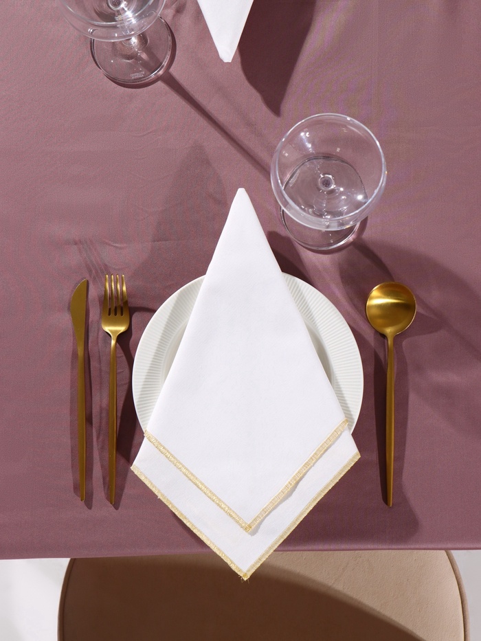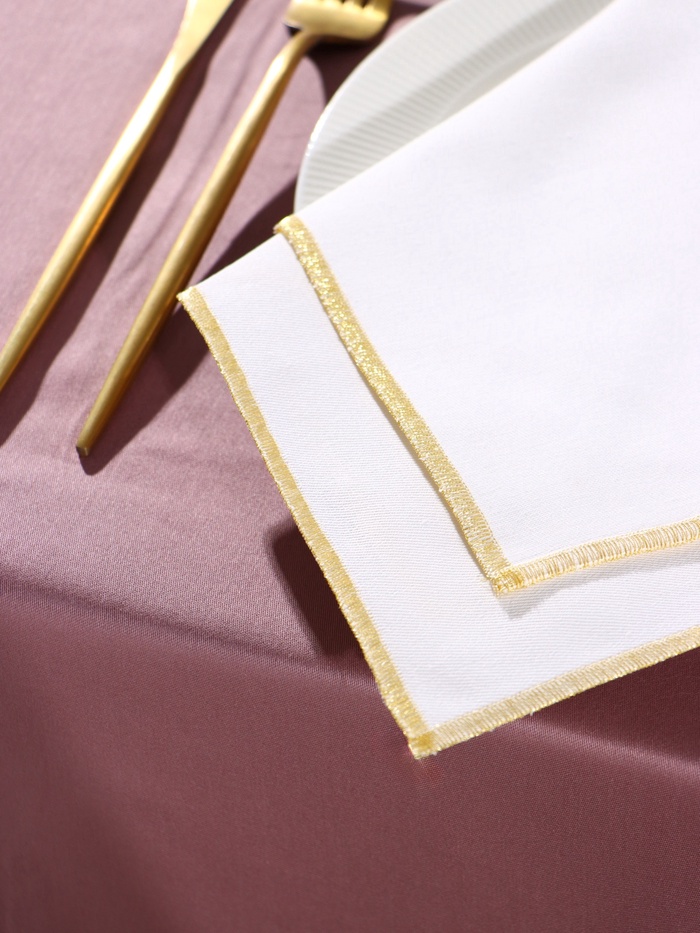 Хотите добавить в сервировку стола ноту торжественности? Набор салфеток «Этель» с золотистой каймой люрекса — именно то, что Вам нужно. Две белые салфетки квадратной формы подходят для праздничного оформления.