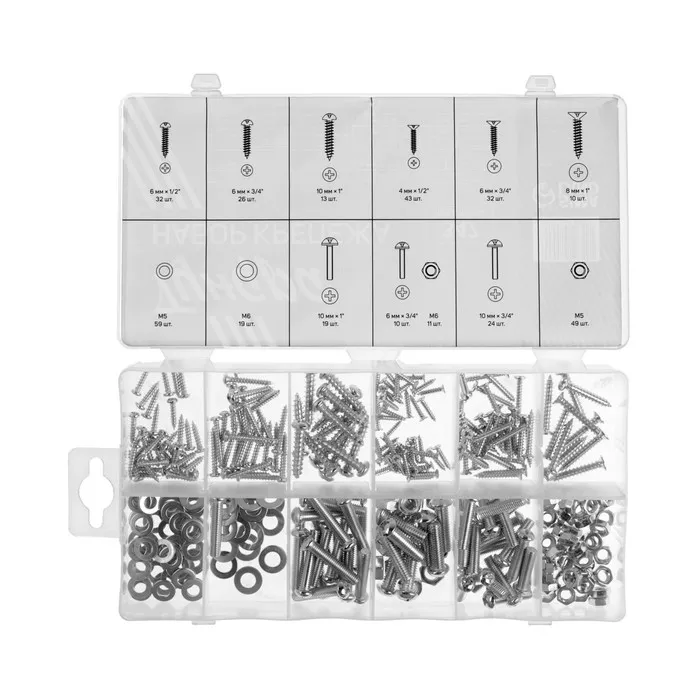 Набор саморезов, винтов, гаек и шайб ТУНДРА krep, 347 предметов — Характеристики