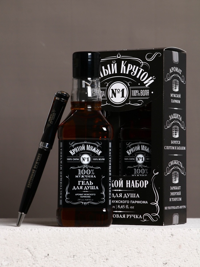 Набор "Самый крутой", гель для душа во флаконе виски и шариковая ручка — Характеристики