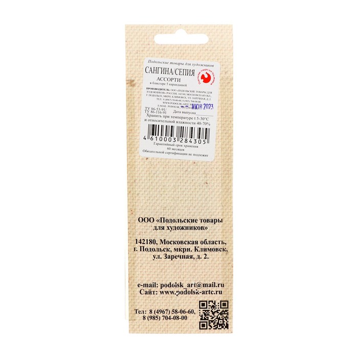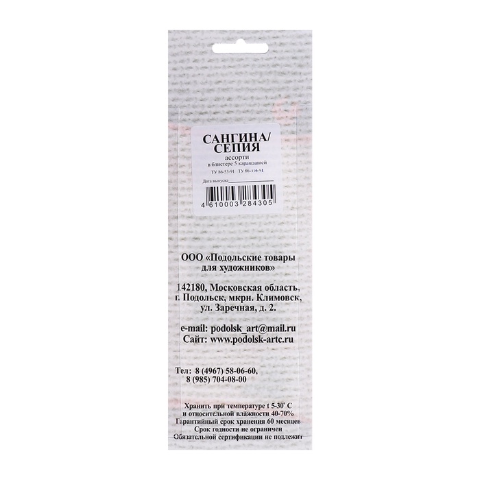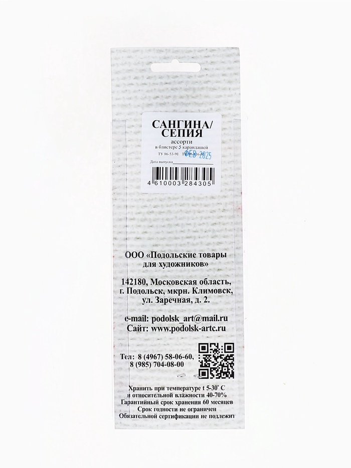 Набор сангина и сепия, 5 шт., (длина 55±1 мм; диаметр 8 мм± 1 мм) в блистере — Характеристики