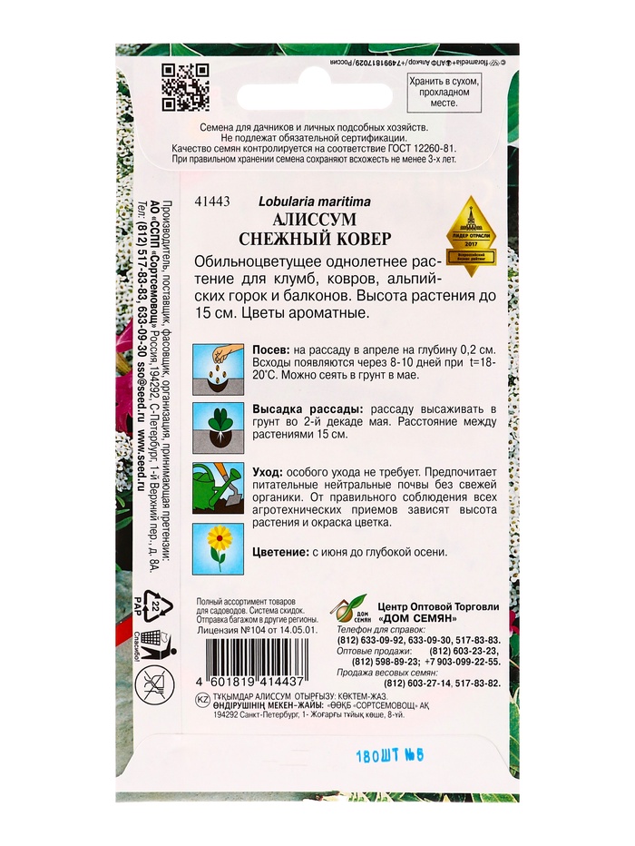 Набор семян Алиссум "Снежный ковер", 5 шт. — Характеристики