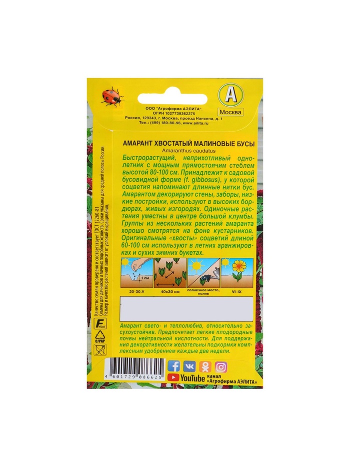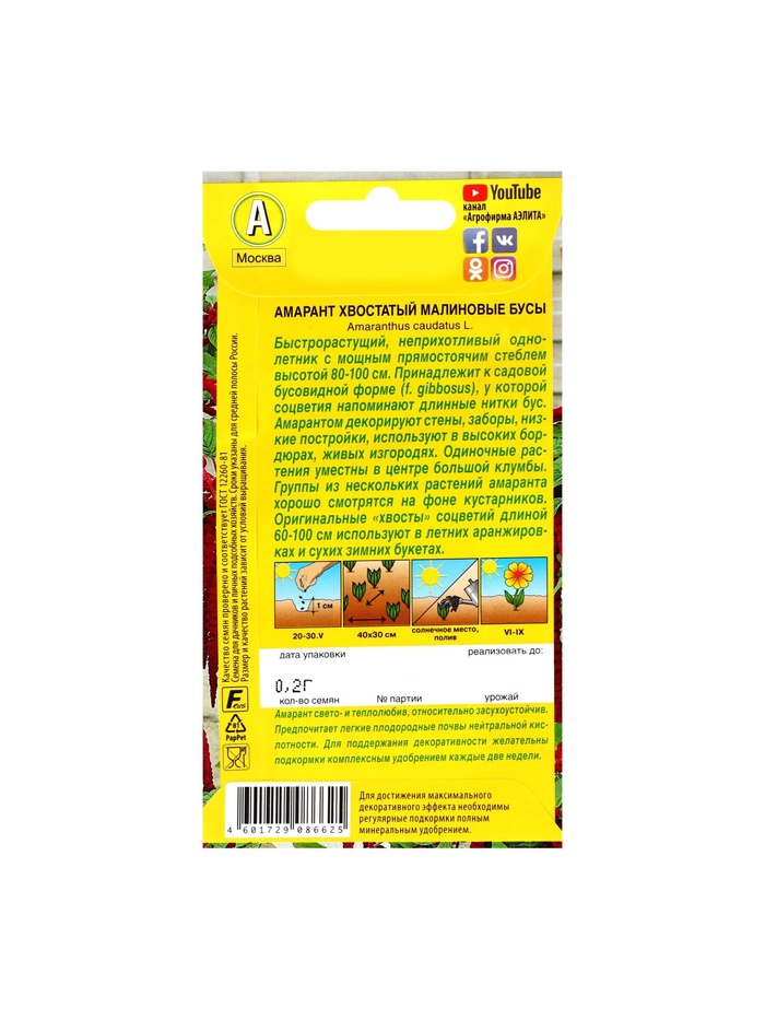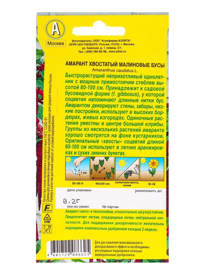 Набор семян Амарант "Малиновые бусы", О, 5 шт. — Характеристики