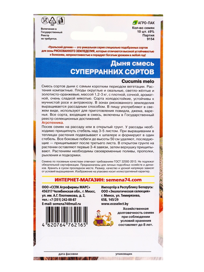 Набор семян Дыня "Смесь суперраних сортов", 5 шт.