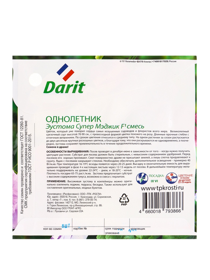Набор семян Эустома "Супер Мэджик" F1 смесь, О, 3 шт. — Характеристики