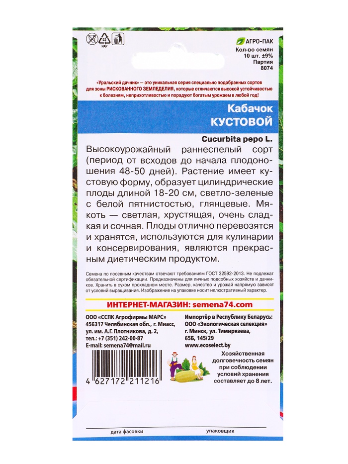 Набор семян Кабачок "Кустовой", 5 шт. — Характеристики