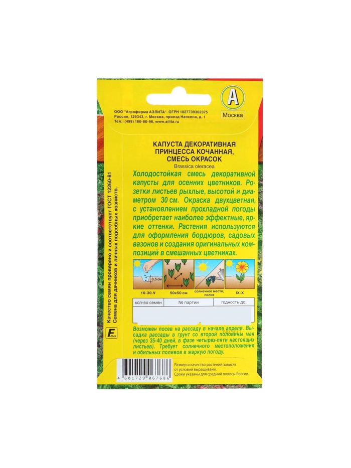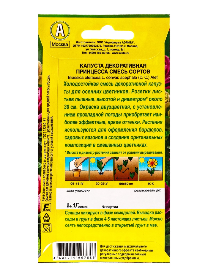 Набор семян Капуста декоративная "Принцесса", смесь окрасок, О, 5 шт. — Характеристики
