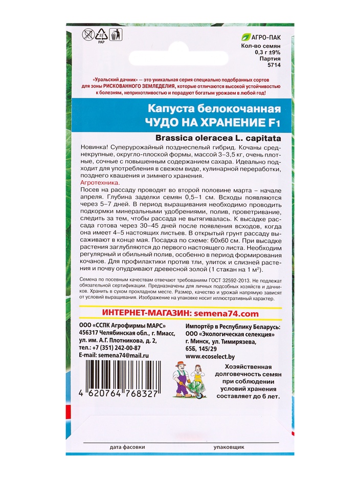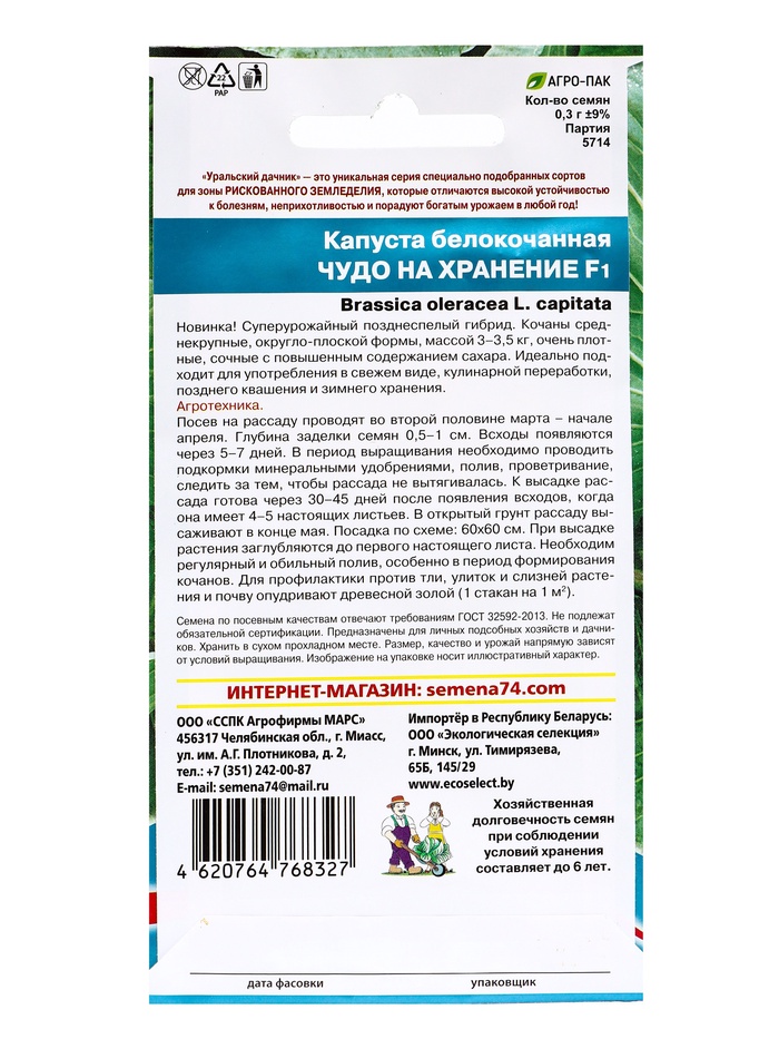 Набор семян Капусты белокочанной "Чудо на хранение" F1, 5 шт. — Характеристики