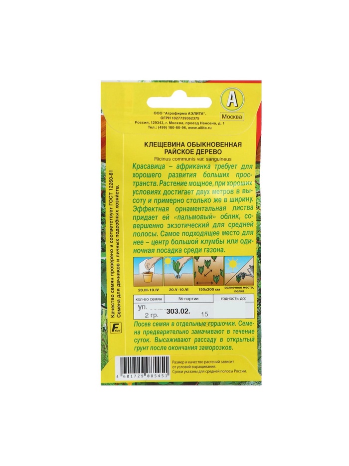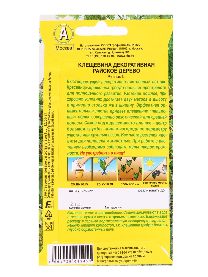 Набор семян Клещевина "Райское дерево", О, 5 шт. — Характеристики