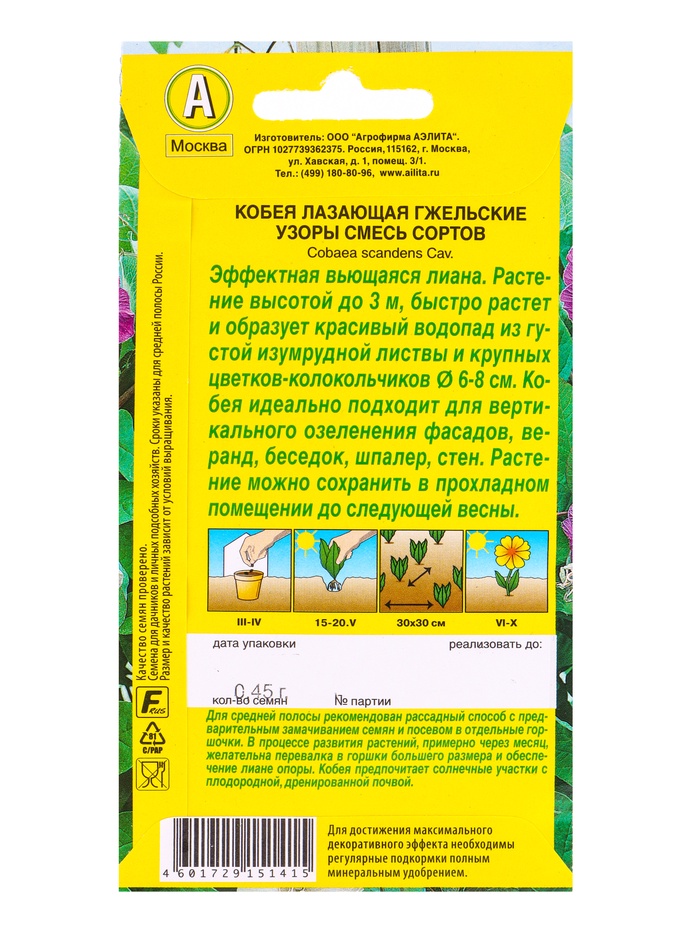 Набор семян Кобея "Гжельские узоры", 4 шт. — Характеристики