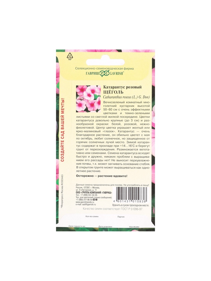 Набор семян комнатных Барвинок "Щеголь", 5 шт. — Характеристики