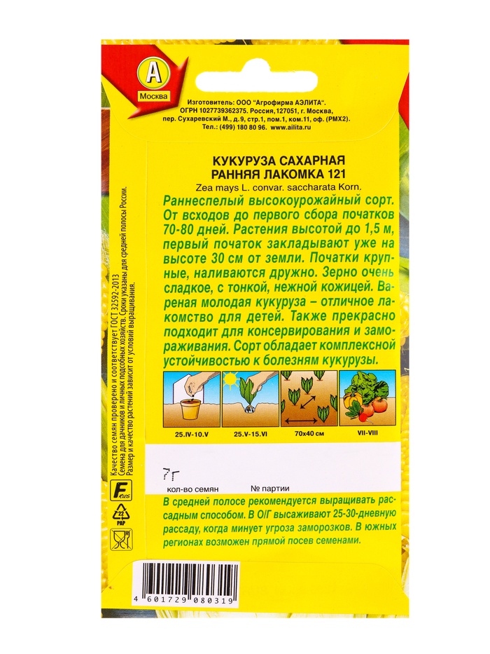 Набор семян Кукуруза сахарная "Ранняя лакомка 121", 5 шт. — Характеристики