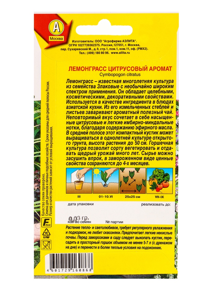 Набор семян Лемонграсс "Цитрусовый аромат", 5 шт. — Характеристики