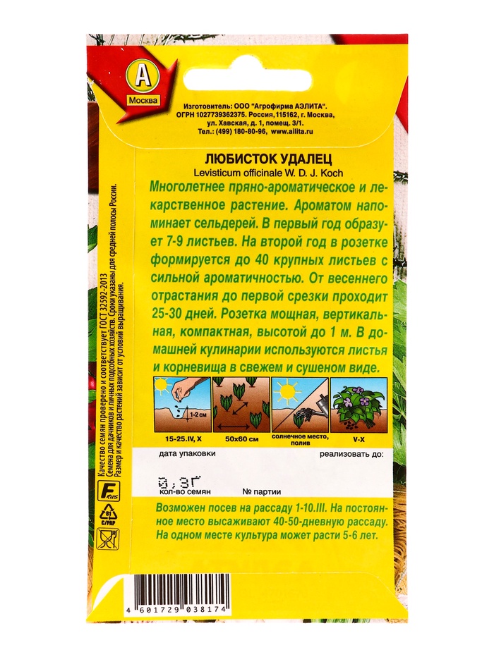 Набор семян Любисток "Удалец", пряность, 5 шт. — Характеристики